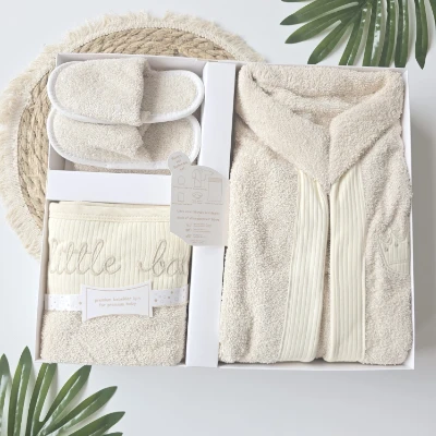 Bebek Bornoz Takımı 5'Li  %100 Pamuk Little Nakışlı 0-2 Yaş Bej