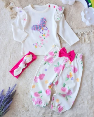 Bebek Takım Renkli Kelebek Detaylı Saç Bantı Hediyeli 3-12 Ay
